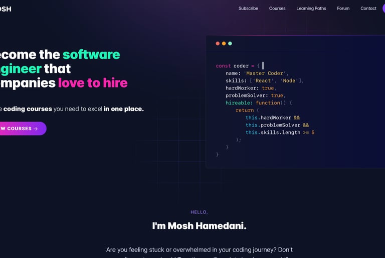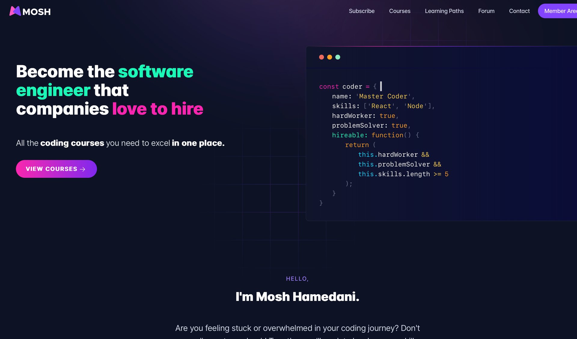Course delivery: Mosh Hamedani's courses are well-structured and tend to include video lectures, coding exercises, and hands-on projects. It does require you to download software. Mosh has a skill for teaching and is able to break down complex topics into simple, understandable pieces. The courses are self-paced, allowing learners to progress at their own speed, and they are designed to provide a solid understanding of the topics covered.